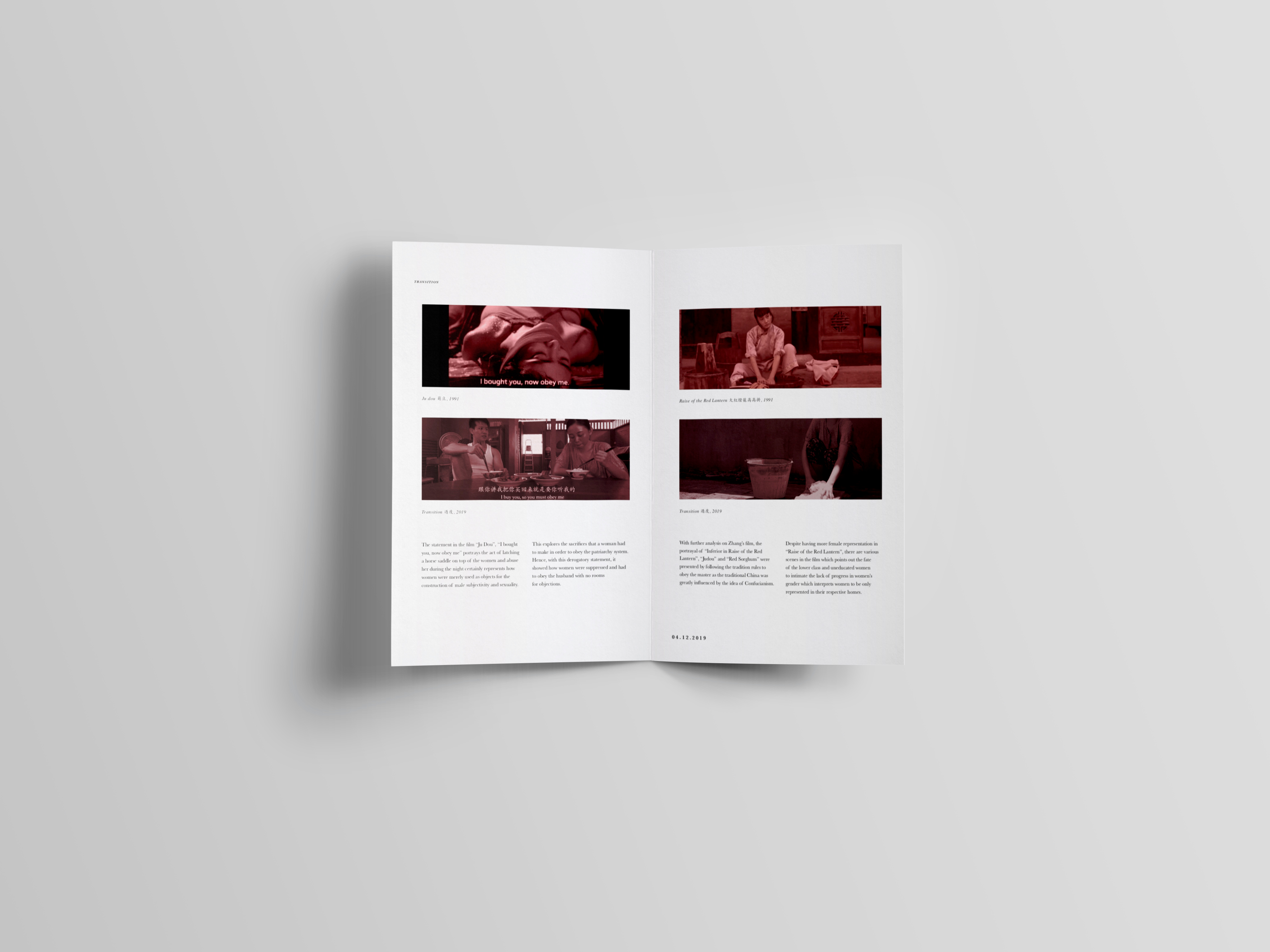 Using brochure as a platform to deliver information about the film screening as it consist of comparative studies between my film and Zhang Yimou’s film to educate audience to understand the objective and purpose behind the film.